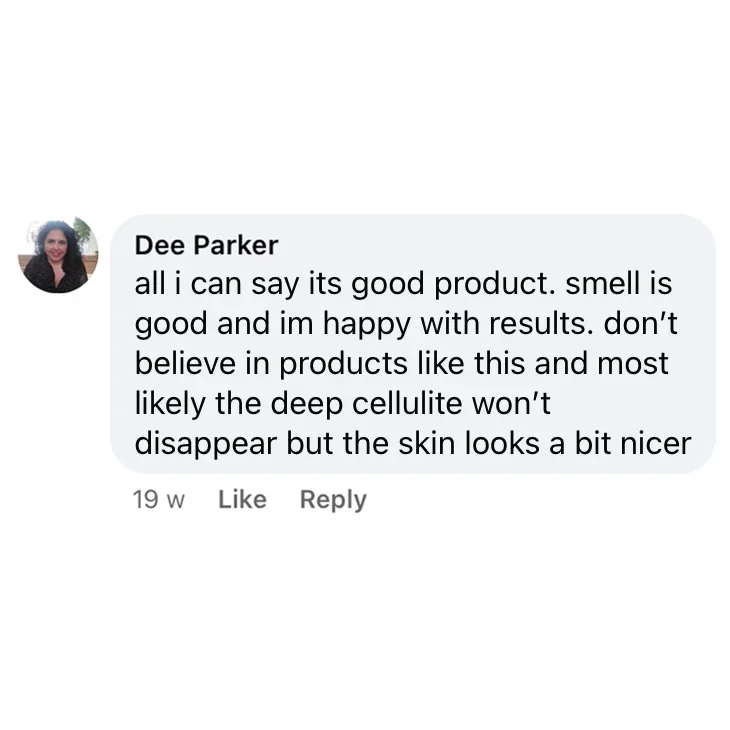 The skin recovers the required level of moisture and becomes softer. A high concentration of 4 active ingredients treats cellulite quickly and effectively.